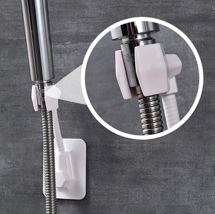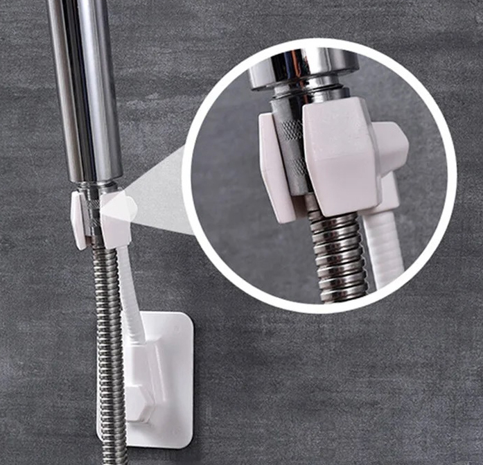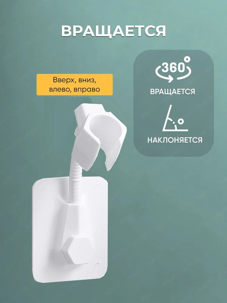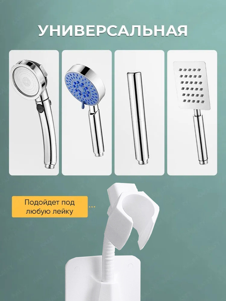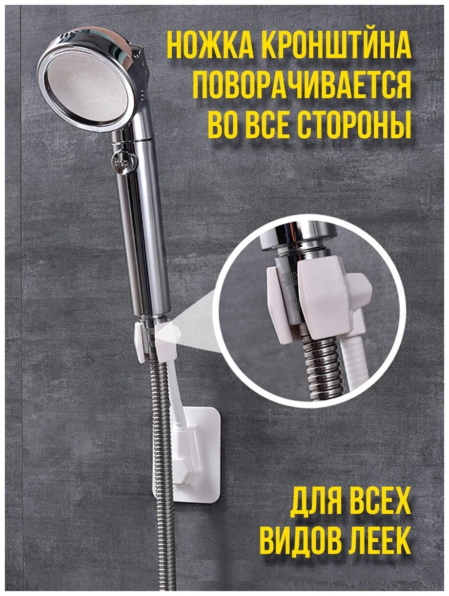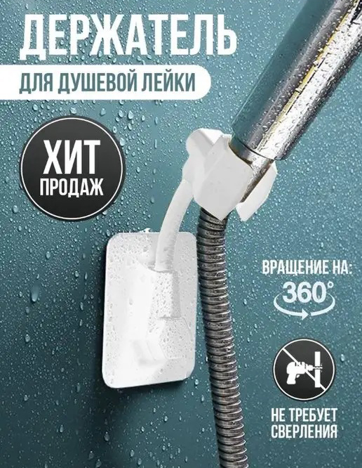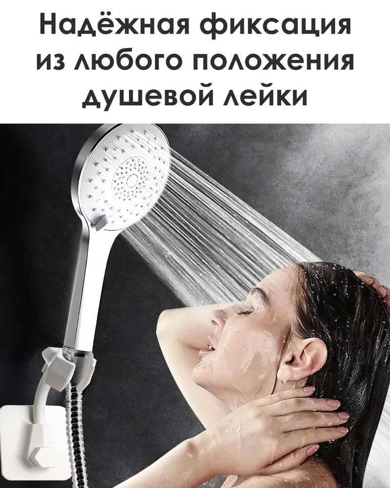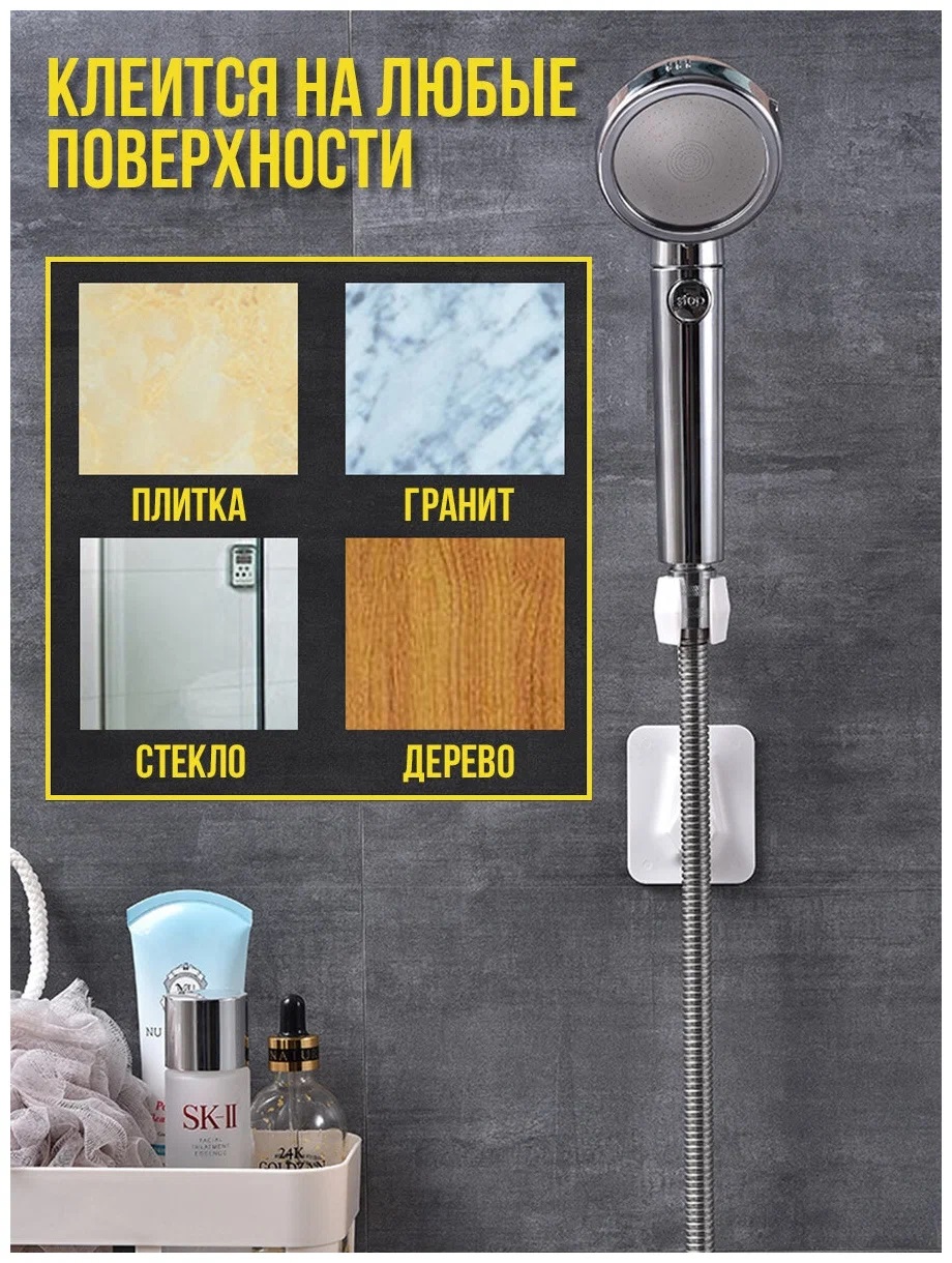 Держатель для душа, держатель для душевой лейки, настенный, на липучках, на присоске. Он крепко держится не только на гладких, но и на матовых твердых поверхностях: плитка, стекло, металл, пластик. Быстро монтируется при помощи клейкого основания без сверления поверхности.