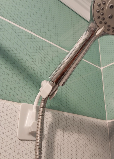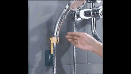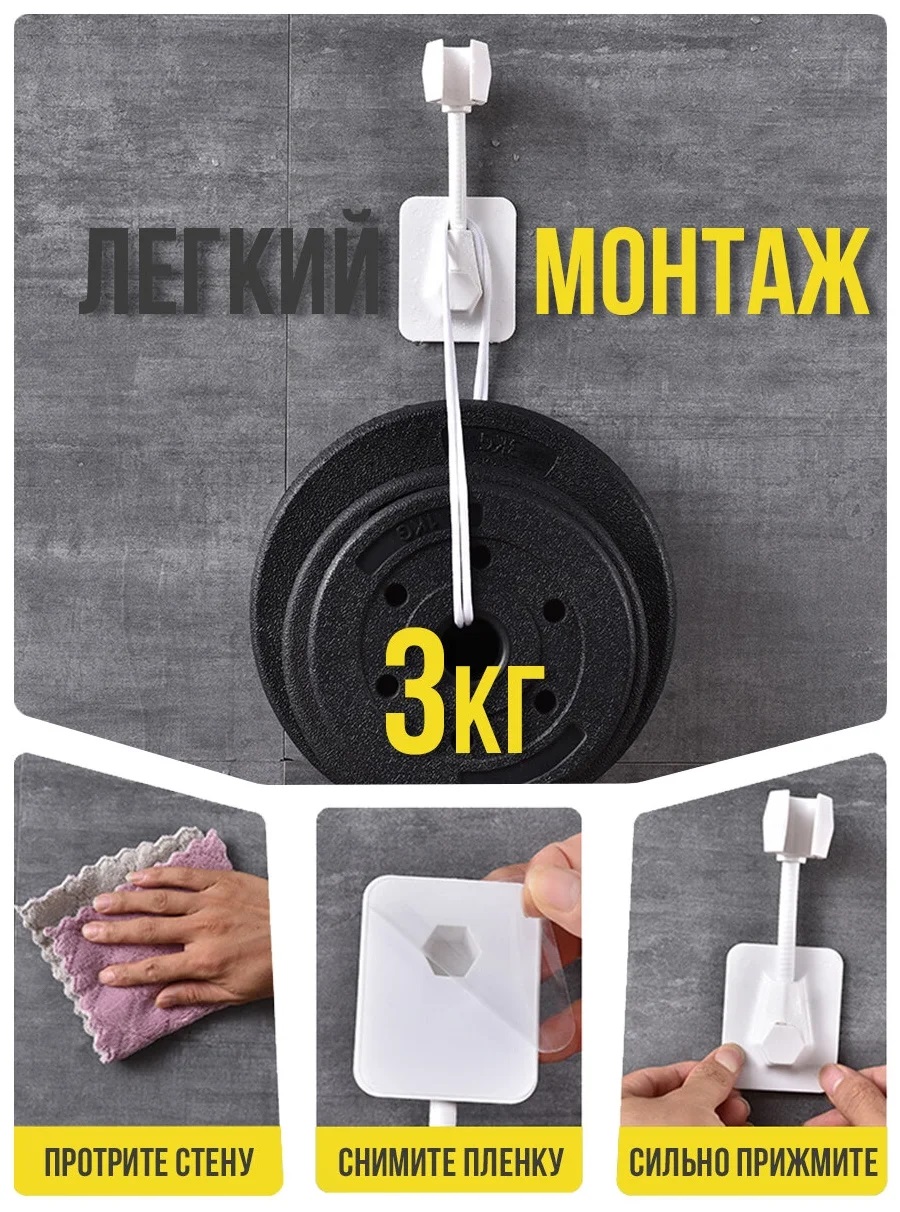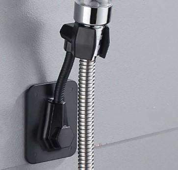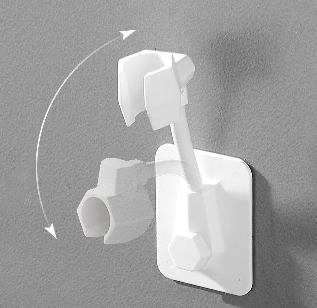 Больше нет необходимости сверлить стену. Надежная фиксация за счет самоклеящейся пластины, выдерживает нагрузку до 5 кг. Кронштейн для душа имеет два дополнительных крючка для ванных принадлежностей.